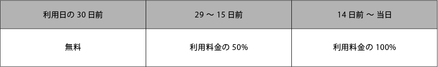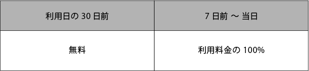 – キャンセル料のお支払いは、キャンセル発生後から1週間以内にお振込みをお願い致します。