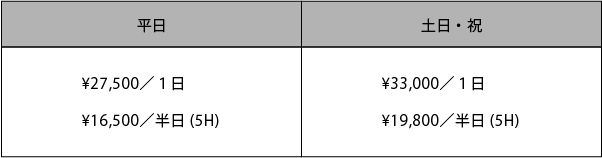 – 最低ご利用料金は3時間からとなります。